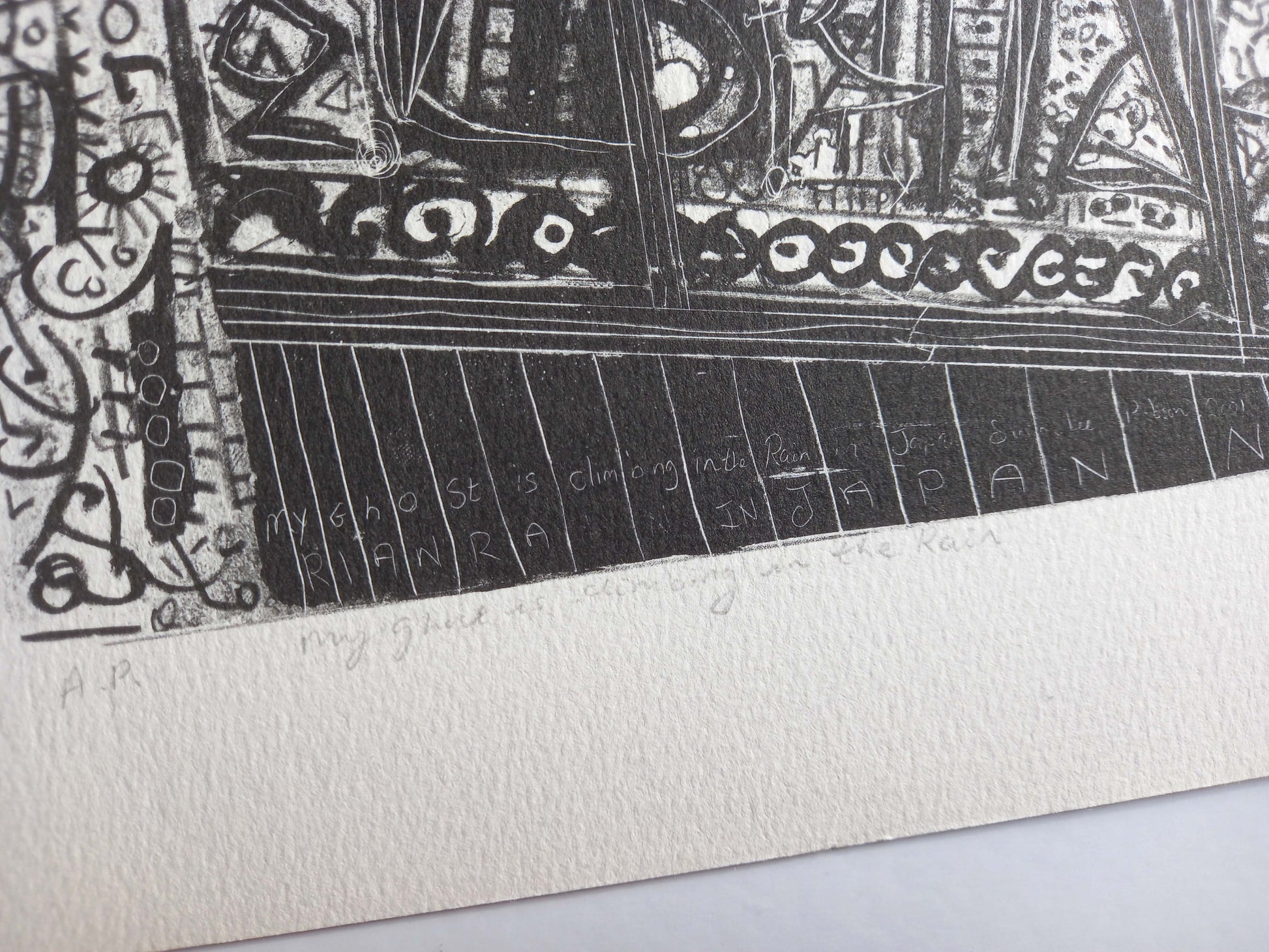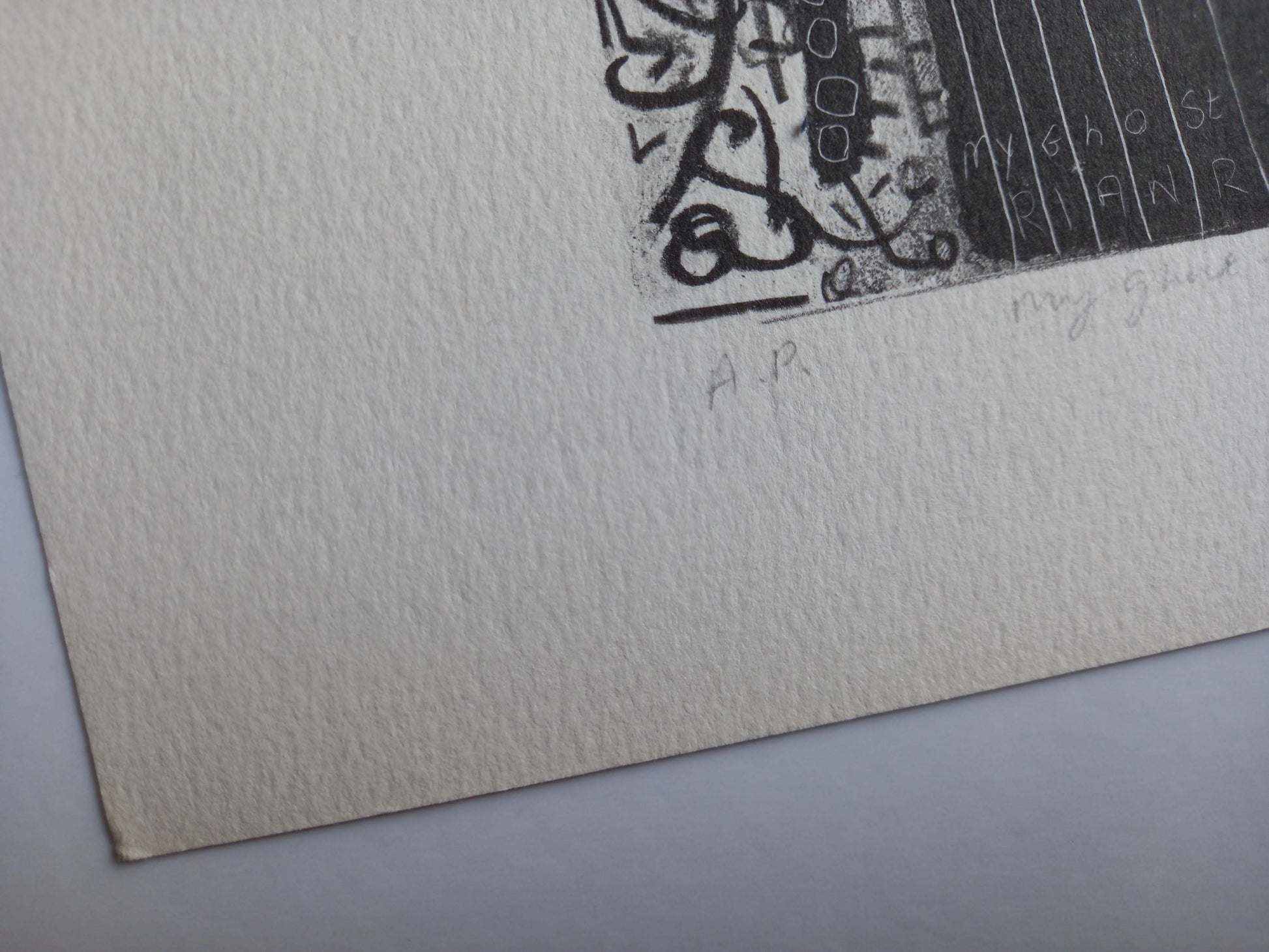 My Ghost is Climbing in the Rain (Artist's Proof) (2001) is hand-signed, titled, and dated. Displayed on beautifully aged Velin d’ARCHES 300gsm paper, with a deckled edge.