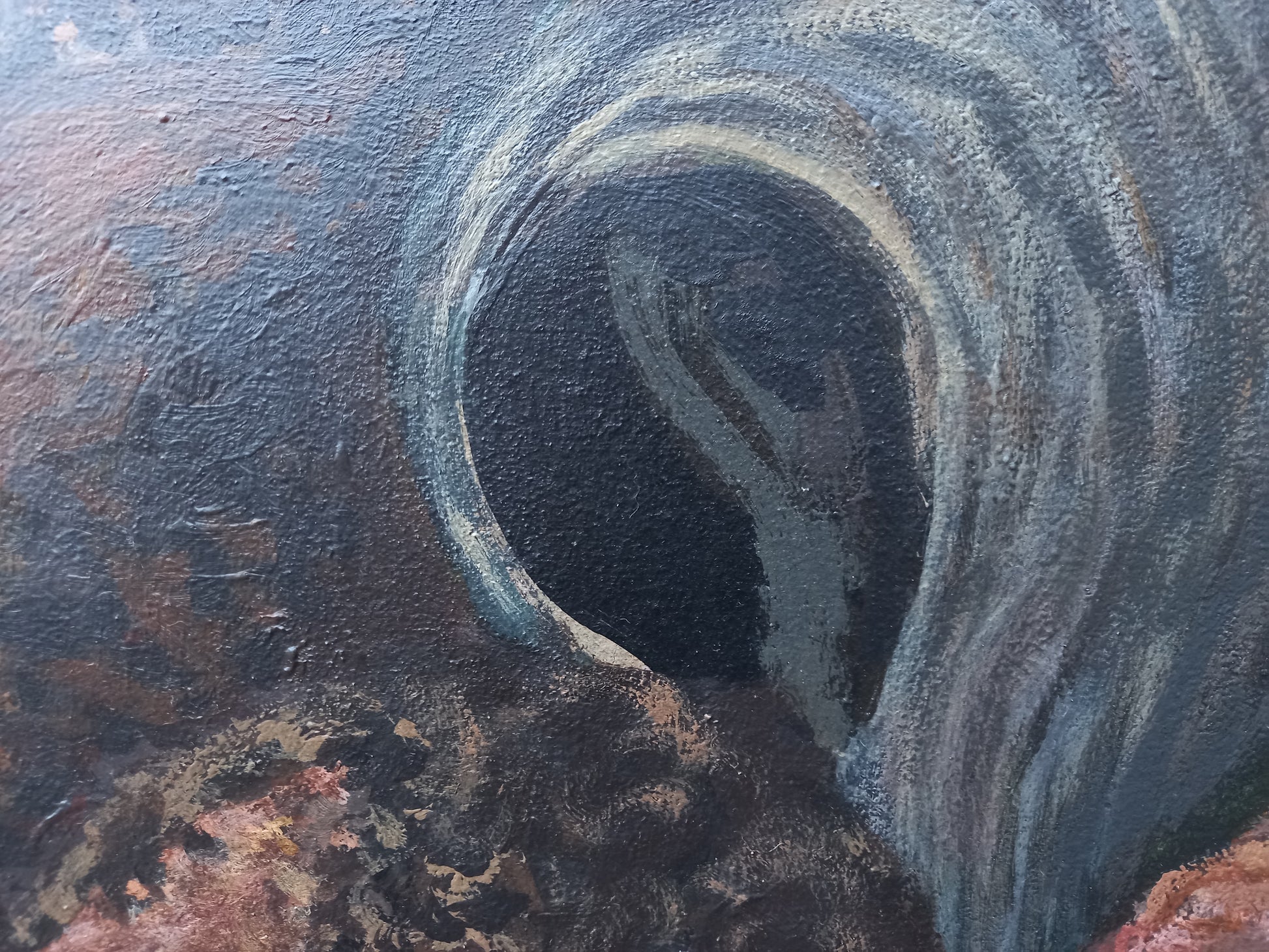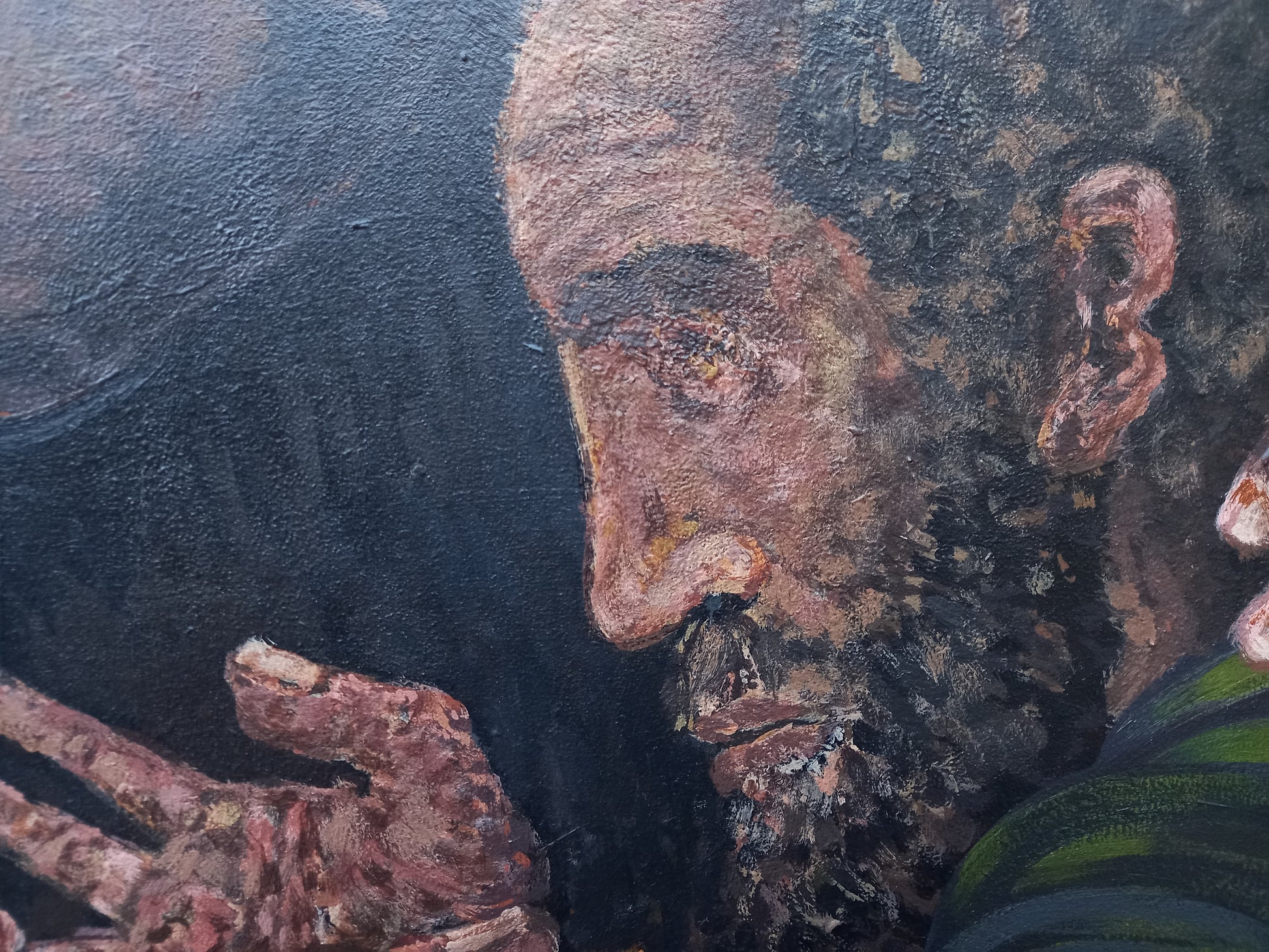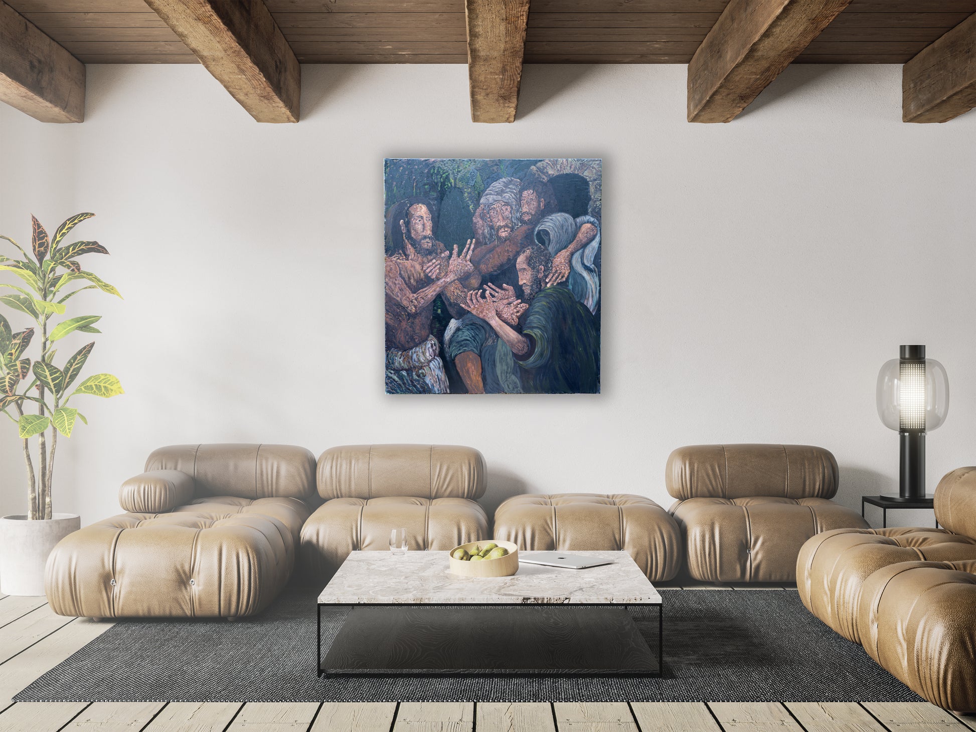 An epic, large-scale exercise in the refinement of artistic technique, the artwork The Hands of Lazarus (2010) highlights evocative imagery and refined craftsmanship. The painting captures the raw physicality of Lazarus’s exhumation, focusing on the tension and struggle embodied in the hands, both his and those around him. These hands, grasping and lifting, symbolise the fragile boundary between life and death, grounding the miraculous moment in human, tactile experience. The artwork emphasises the visceral, corporeal nature of resurrection, where physical touch becomes the bridge between the sacred and the earthly.