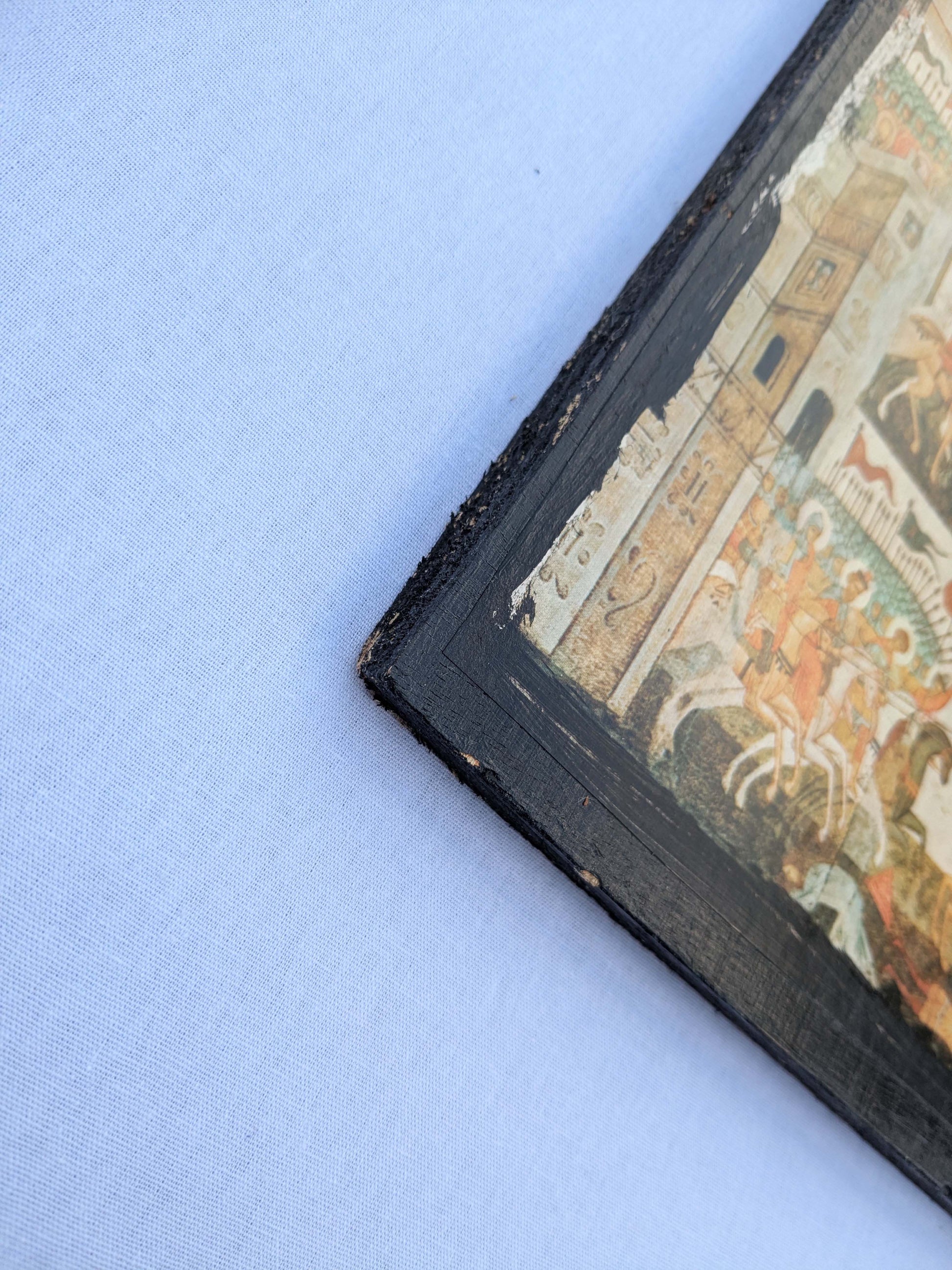 A rustic, handcrafted icon inspired by the original Battle of the Novgorodians with the Suzdalians icon (mid-15th century, Novgorod, Russia).