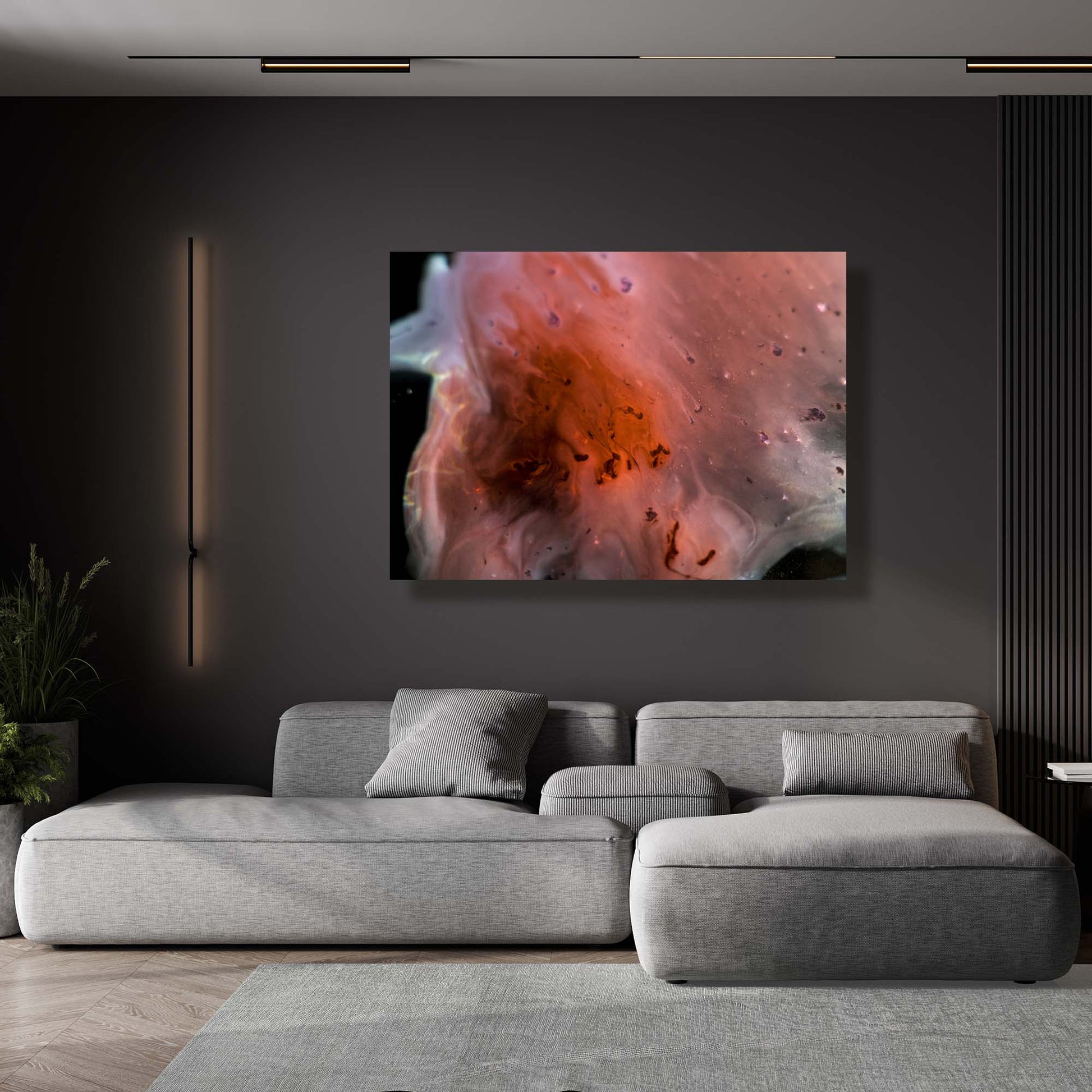 Presented on dibond with a lustre finish, and incorporates a hidden subframe hanging system, floating the artwork away from the wall.