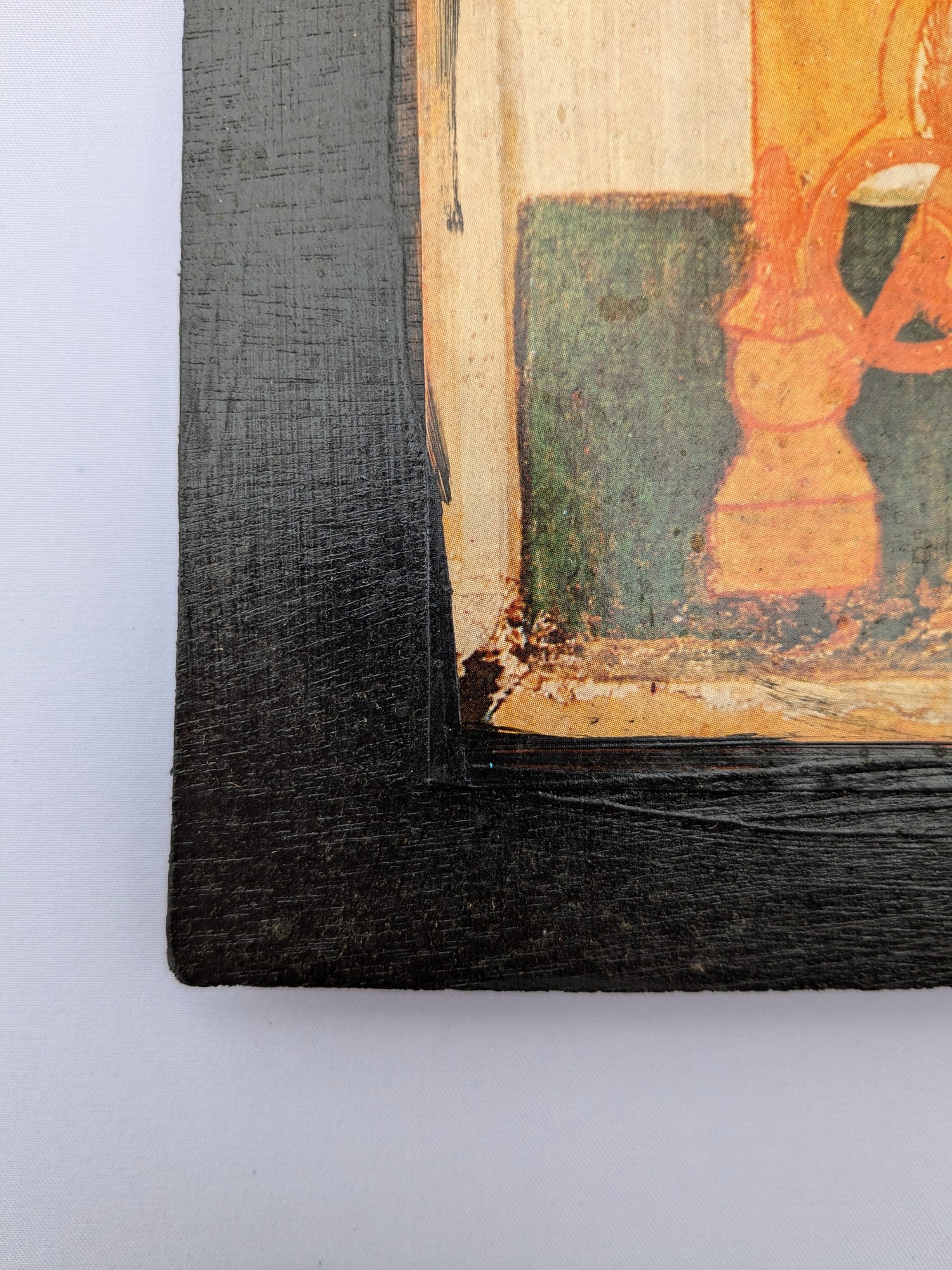 With Eikṓns, Robson focuses on the sacred, producing icons that reflect the profound depth and timelessness of Orthodox tradition. Each piece is meticulously handcrafted, beginning with a decoupage on reclaimed wood and layered with subtle washes of egg tempera, stainers, varnish, and water lacquer. Expertly distressed to evoke the gentle patina of aged sacred art, some icons are further enhanced by elegant gilt or natural wood frames, amplifying their devotional presence.