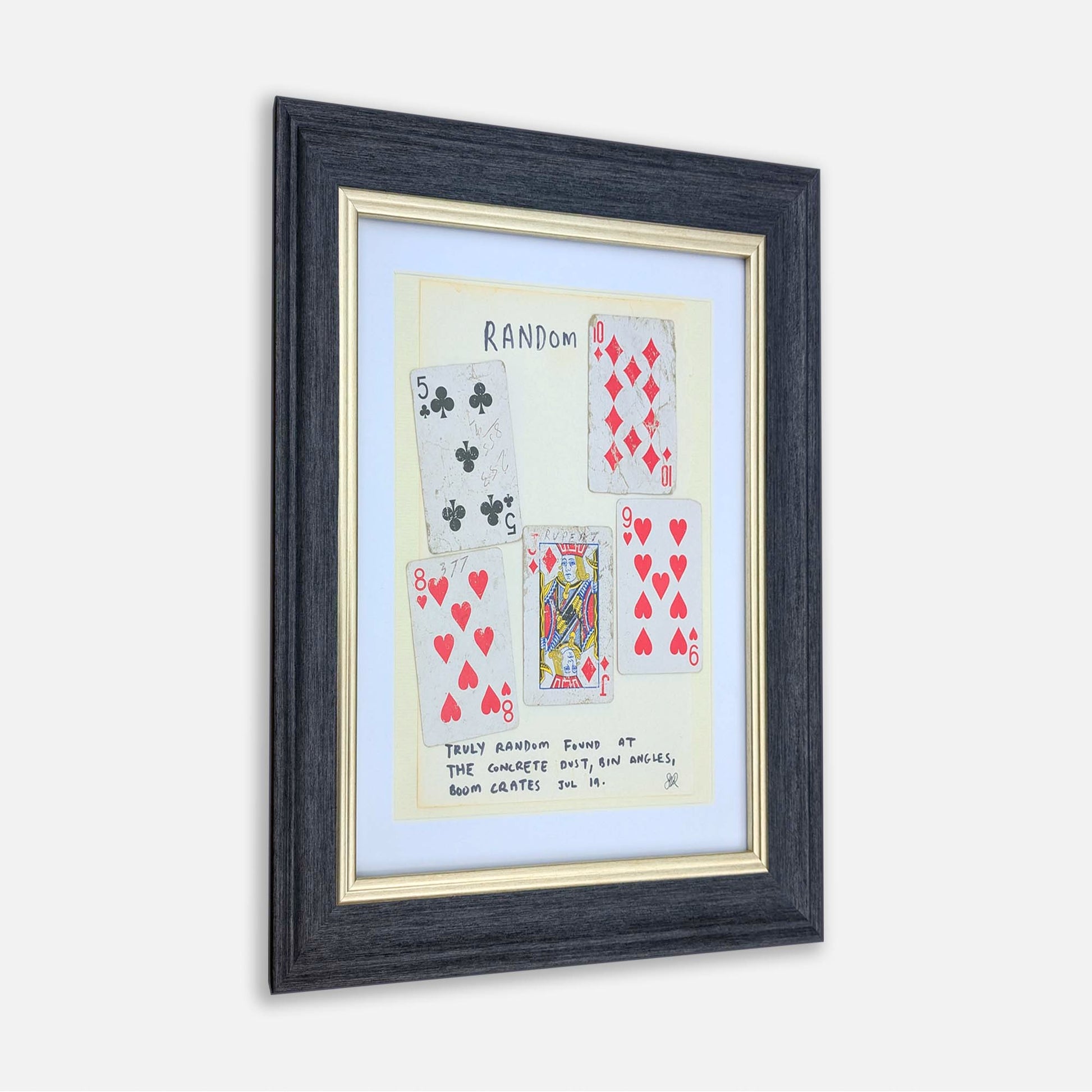 Random, a deck of the past, a message from nowhere. A collage of chance, vintage cards, and whispered secrets.
