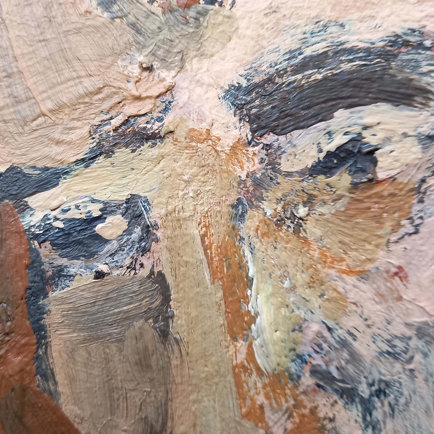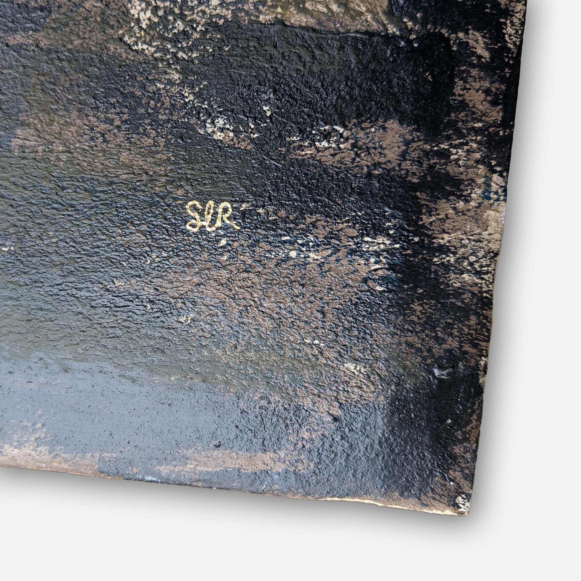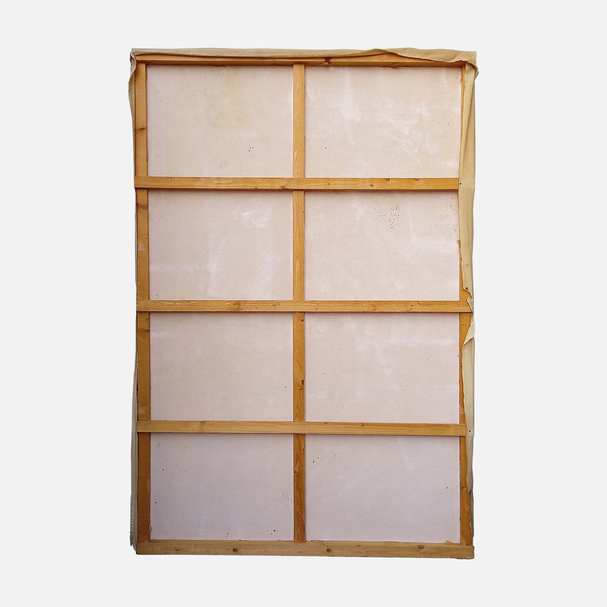 In this acrylic on linen, Robson has built up the surface through 20-30 delicate coats of scumble glaze, with varnish integrated and layered throughout. Each layer has been meticulously applied to cultivate subtle shifts of light, depth, and atmosphere, revealing nuances that evolve with the viewer’s gaze. The layering creates a luminous, living surface, where every coat contributes to the painting’s singular presence and character. While the edges show minor signs of aging due to storage, the main painted surface remains in excellent condition, preserving the work’s integrity and brilliance.