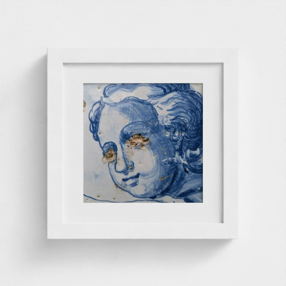 Drawing from his photographs of traditional blue tiles adorned with angelic, cherubic, and expressive faces, some marked by damage or missing features, Langton explores themes of beauty, loss, and transcendence.
