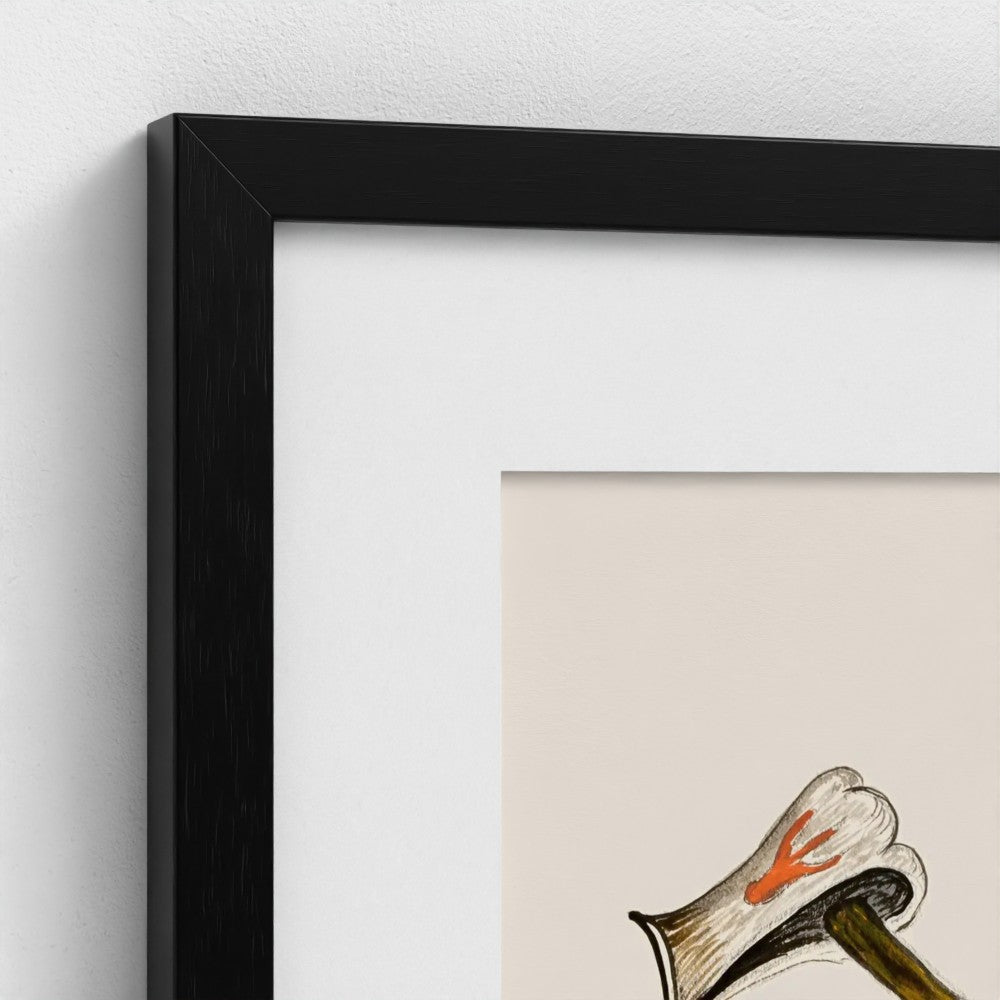 This giclée print on Hahnemühle 308gsm paper, is mounted in a black wood frame and finished with a UV-resistant Perspex cast acrylic glaze, ready to hang.