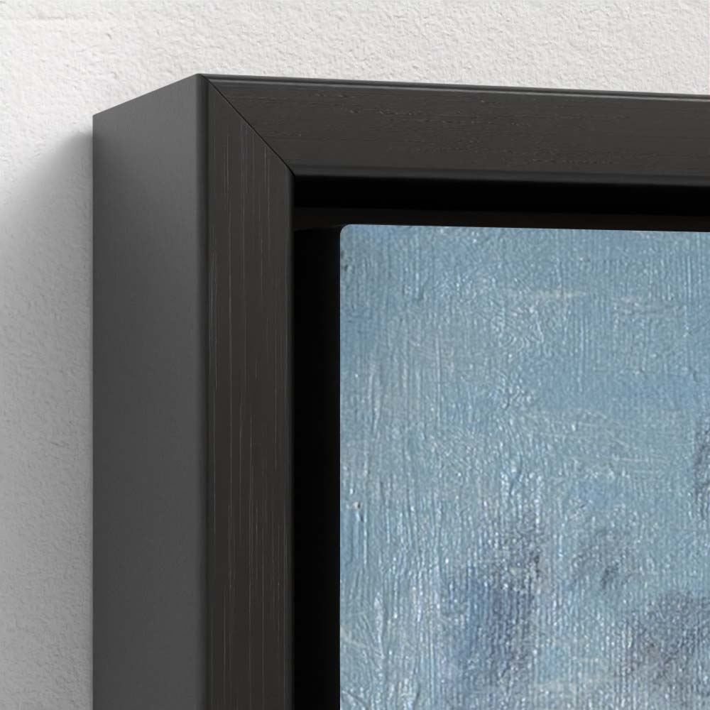 This giclée on canvas is presented in a black float frame and is ready to hang.