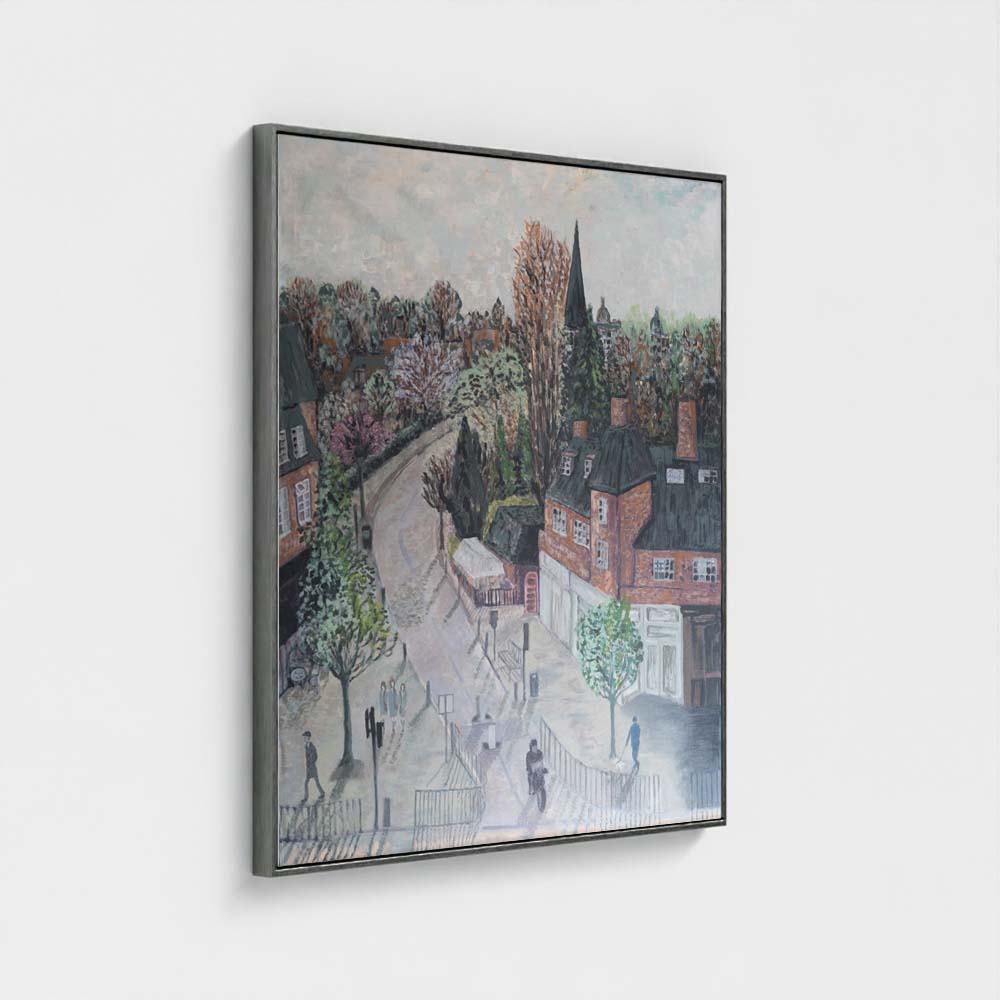 This giclée on canvas is presented in an antique silver float frame and is ready to hang.